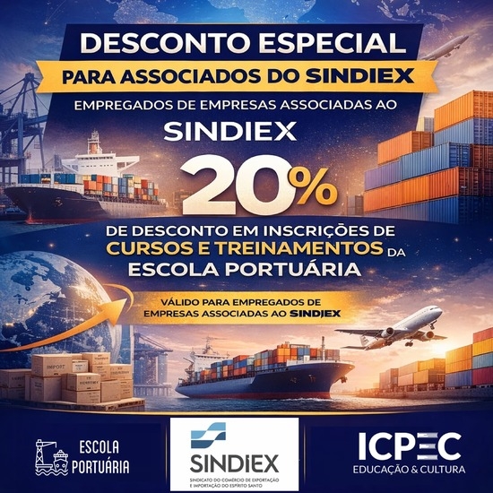 Associados Sindiex têm 20% de desconto em cursos da Escola PortuáriaPublicado em 11/02/2026 Associados Sindiex têm 20% de desconto em cursos da Escola PortuáriaO Sindiex celebrou um convênio com o Instituto Conhecer pela Educação e Cultura (ICPEC) para ampliar o acesso à qualificação profissional. A parceria garante aos associados do sindicato um desconto de 20% em cursos e treinamentos voltados à área portuária. As aulas serão ministradas por meio da Escola Portuária, plataforma que concentra palestras, consultorias e capacitações especializadas nos segmentos logístico e portuário. O ICPEC desenvolveu um portfólio de cursos baseado em uma trilha de aprendizado inovadora e ministrada por especialistas para atender à demanda crescente do setor portuário. Conteúdo atualizado, certificações reconhecidas pelo mercado portuário, metodologia teórico-prática e suporte dedicado aos alunos são alguns dos benefícios oferecidos pelo ICPEC durante os cursos. Para utilizar o benefício, os interessados devem acessar o site oficial do instituto e aplicar o cupom SINDIEX20% no momento da compra. A iniciativa utiliza tecnologias que facilitam o aprendizado e busca fortalecer a formação técnica dos profissionais que atuam no mercado capixaba. São mais de 13 cursos, entre eles: Análise e Gestão de Riscos Contratuais; Introdução à Gestão de Processos no ambiente portuário; Qualidade de Serviços; Formação de Fiel depositário em recintos alfandegários; Tópicos de Operações Portuárias e Segurança da informação e proteção de dados. A plataforma de ensino pode ser acessada por meio do site https://icpec.org.br/ ou pelo endereço: https://escolaportuaria.com/#cursos ICPEC A Escola Portuária nasceu da visão do Instituto Conhecer pela Educação e Cultura (ICPEC) de transformar a educação no setor marítimo e portuário brasileiro. Fundada com o compromisso de oferecer capacitação de excelência, a escola representa a união entre conhecimento acadêmico de ponta e experiência prática do mercado portuário. Em parceria estratégica com o ICPEC, desenvolve programas de formação que atendem às demandas reais do setor, preparando profissionais para os desafios do mercado portuário moderno. SERVIÇO: ICPEC - Cursos da Escola Portuária Local: R. José Farias, 160 - Santa Luíza, em Vitória Público: Desconto de 20% para empregados das empresas associadas ao Sindiex Site do ICPEC: https://icpec.org.br/ Horário de Funcionamento: de segunda a sexta-feira das 9h às 17h E-mail para mais informações: escolaportuaria@icpec.org.br Contato: 27 98871-2411 |